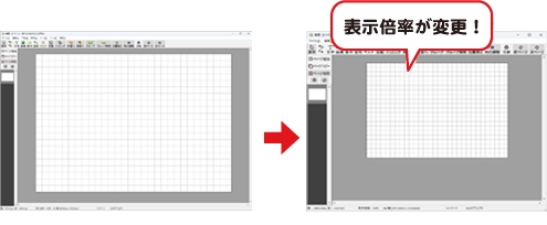 全体のレイアウトをみたい時や、細かい調整をしたい時など、表示倍率を変更すると作業しやすくなります。