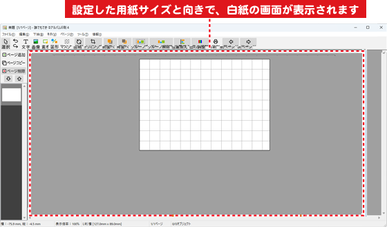 設定した用紙サイズと用紙の向きで、白紙の画面が表示されます。