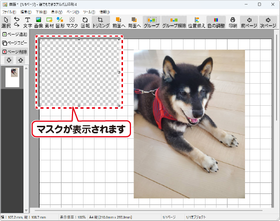 ページの左上にマスクが作成されます。