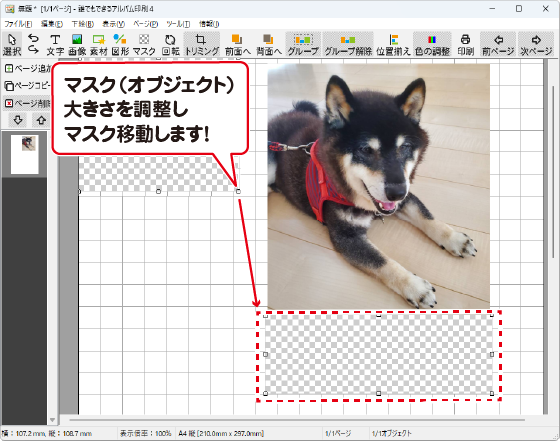 以下は、写真を配置しているレイアウトに、マスク機能を使用する例です。