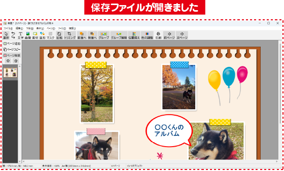 「ファイル」メニュー→「任意の場所に保存する」で保存したアルバムファイルは、