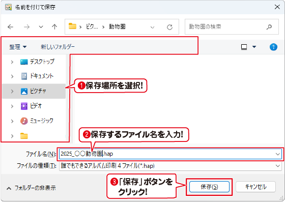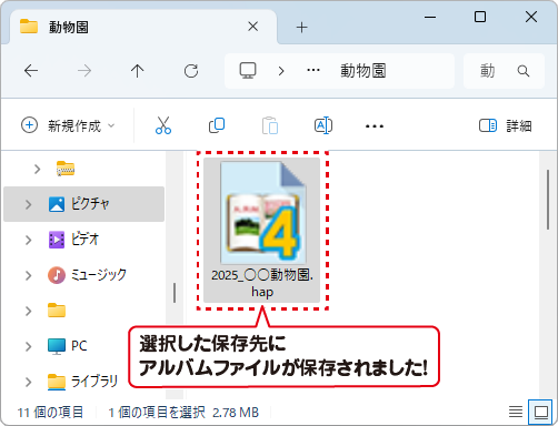 選択した保存先に、アルバムファイルが保存されました。