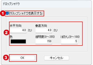 影を取り消す場合は、再度「ドロップシャドウ」画面を表示し、