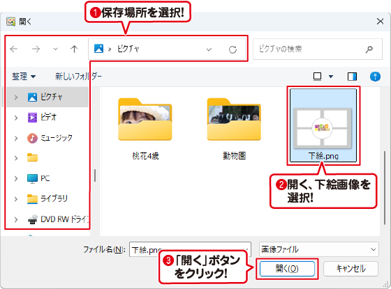 (例:パソコンに下絵画像として保存しているファイルを読み込む)