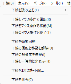 下絵の操作は、「下絵」メニュー※から、下絵の移動や回転ができます。