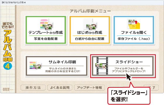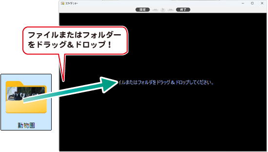 スライドショー画面にドラッグ&ドロップして、写真を読み込みます。