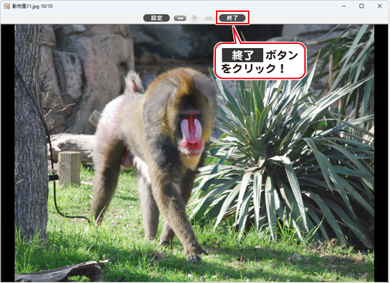 スライドショーを終了する時は、ボタンをクリックしますと、