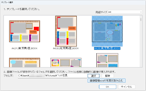 2. テンプレートを選択後、写真が入っているフォルダーを指定します