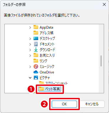 選択ボタンをクリックして、写真が保存されているフォルダーを選択します。