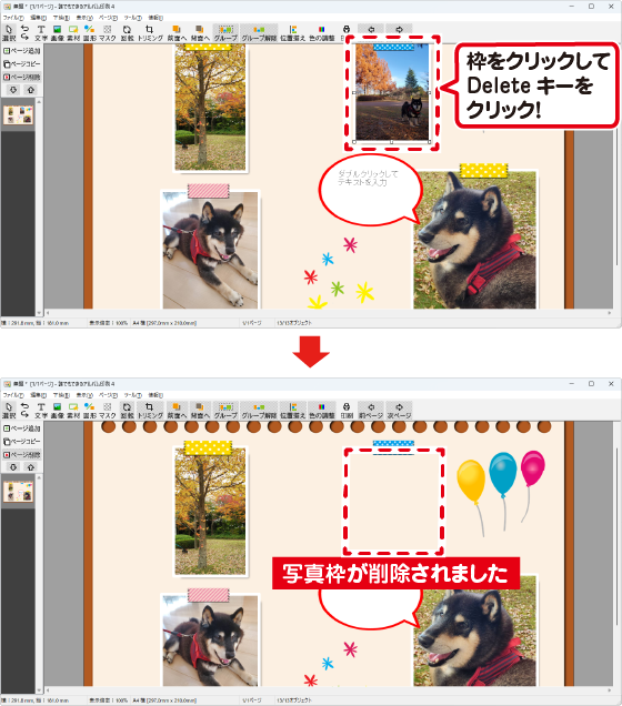 キーボードの[Delete]キーを押すと、枠を削除できます。