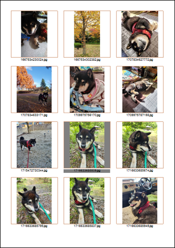 ※余白とサムネイルサイズの数値によって、列数や行数、写真の間隔が変わります。