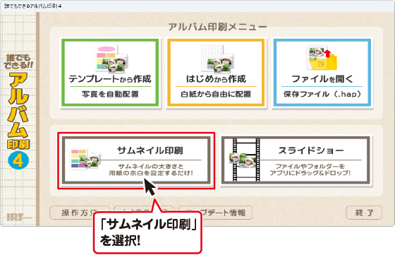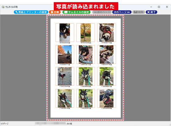 4. サムネイル印刷画面に写真を読み込んで印刷します