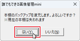 確認画面が表示されますので、はいボタンをクリックし、
