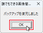 続いてOKボタンをクリックしますと、バックアップの復元が完了です。