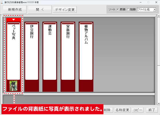 本棚のファイルを開いて、ファイルに取り込んでいる(登録)している写真を表示します。