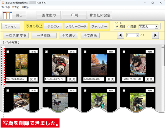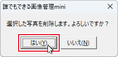 確認画面が表示されますので、はいボタンをクリックすると、 選択した写真が削除されます。