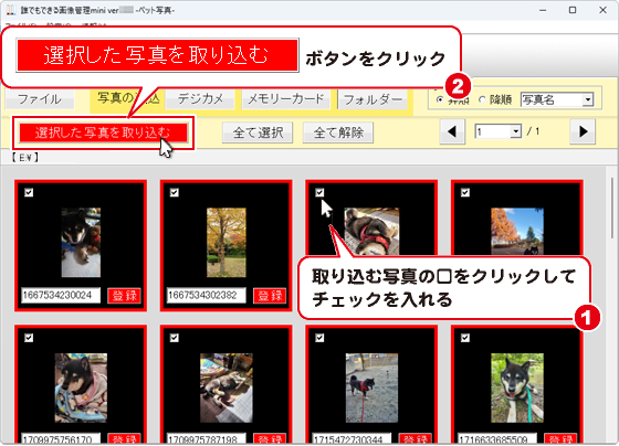 手順4. ファイルに写真を取り込む(登録する)