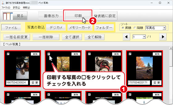 「誰でもできる画像管理mini」に取り込んだ写真を