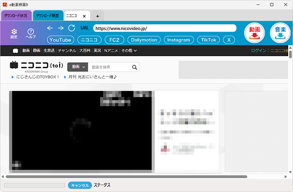 YouTube / ニコニコ動画 / FC2動画 / Dailymotion / Instagram / TikTok / X