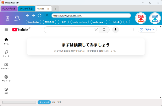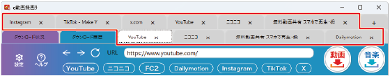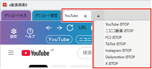 クリックして YouTube ニコニコ動画 FC2動画設定 Dailymotion Tik Tok X 各サイトを表示します。 ※各ボタンからもサイトの表示は可能 です。 e動画録画9 各ボタンの説明 から操作確認ができます。 |
