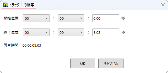 切り取り範囲を編集せずにトラック編集画面を閉じます。