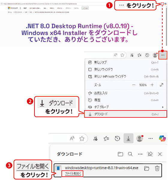 .NET 8.0 Desktop Runtimeのダウンロードが開始されます。