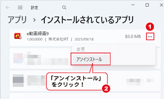 お使いのパソコンから「e動画録画9」をアンインストール(削除)する場合の手順です。