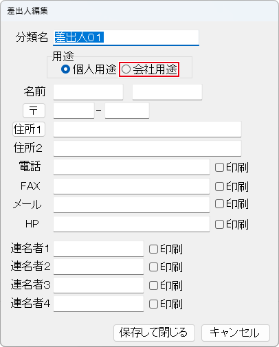 ○をクリックして、個人用途、会社用途どちらかを選択します。