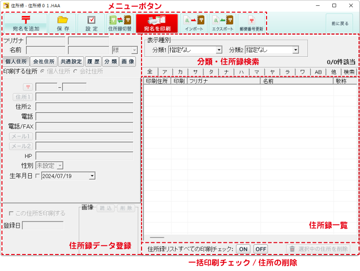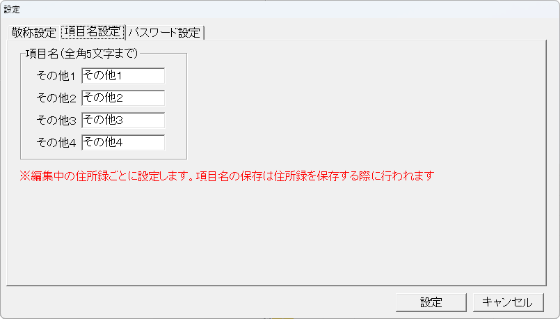 ※分類一覧は各宛名、全ての住所録「住所録01-10」で共通の設定です。