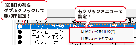 チェックを入れると印刷チェックがオンになり、印刷されます。