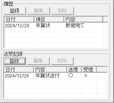 年賀状や郵送のやりとりを履歴として記録することができます。