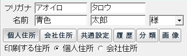 ○をクリックして印刷する住所を個人住所・会社住所から選択します。
