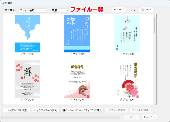 ファイル選択画面が表示されます。再編集するハガキのデザインを選択します。