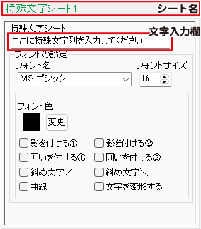 特殊文字シートを配置することができます。