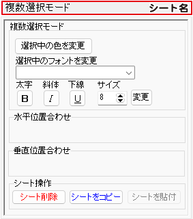 デザイン画面で、複数のシートを選択している時に、