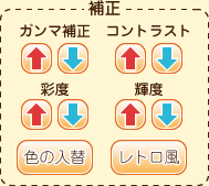 各項目のボタンをクリックして、色を補正を行います。