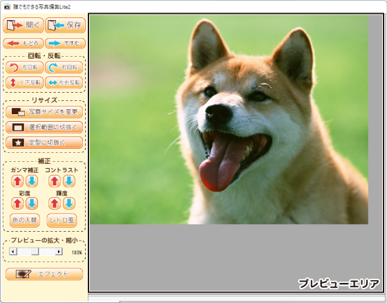 プレビューエリア…現在編集している画像を表示します。