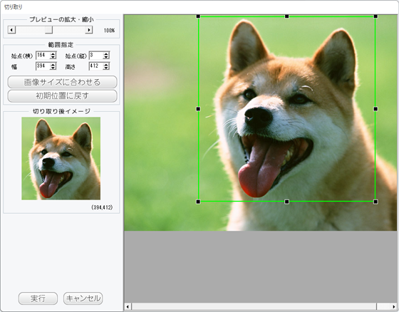 枠の大きさ、枠の位置を設定して、画像を切り取ります。