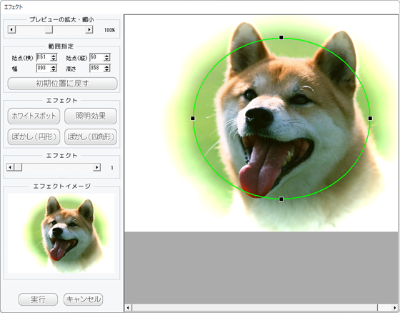 エフェクト枠の位置を設定して、画像にエフェクトをかけます。