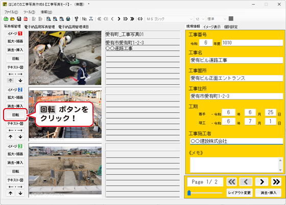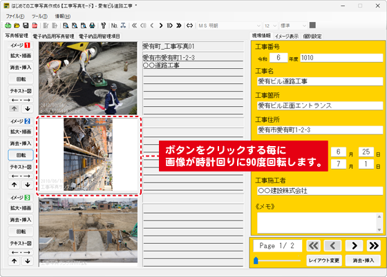 ※電子納品モードでは、画像の回転はできません。