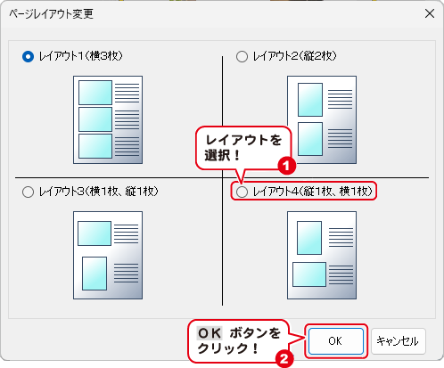 4つのパターンからレイアウトを選択してOK ボタンをクリックします。