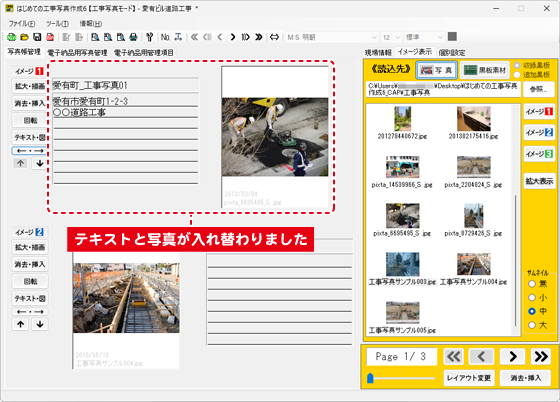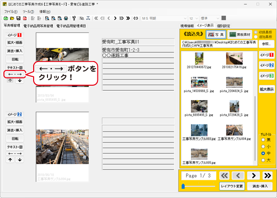 下図例のように3つの写真から2つの写真に変更する場合は、入力データの有無によって確認画面が表示されます。