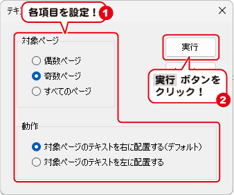 偶数ページ/奇数ページ/すべてのページを対象に、テキスト位置を変更できます。