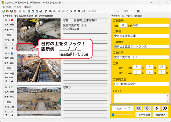 写真のExif情報の表示/非表示/日付の変更(※工事写真モード・電子納品モード共通)