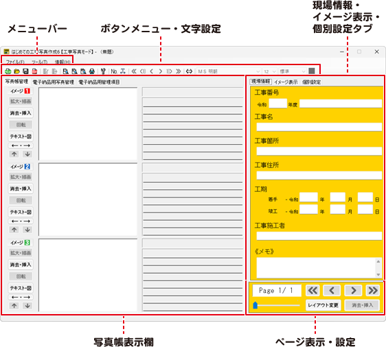 「はじめての工事写真作成6」のバージョン情報を表示します。