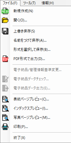 | 作成した写真帳をPDF形式で出力します。 [ファイル]メニュー → [PDF形式で出力]と同様です。 |