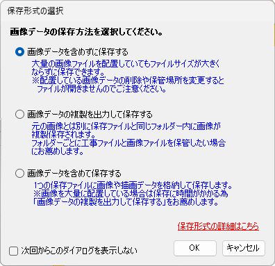 ※一度この形式で保存を行うと画像データを含めない保存形式には変更できません。