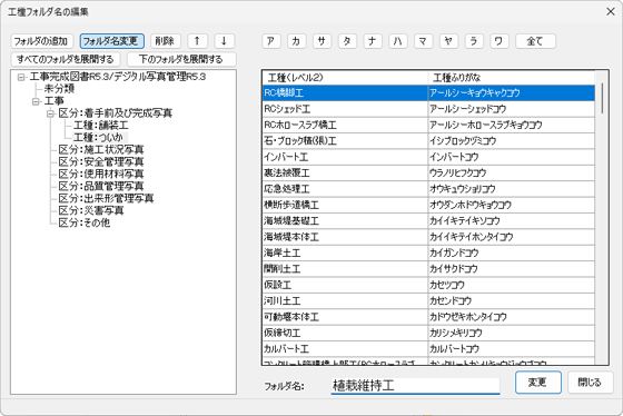 追加フォルダ名に入力した名前のフォルダーを選択した工種フォルダーに追加します。