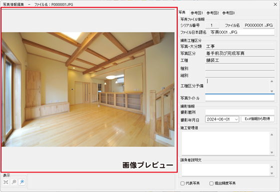 写真管理基準(案)の分類に準じ、写真が分類されている区分フォルダーの名称が自動入力されます。