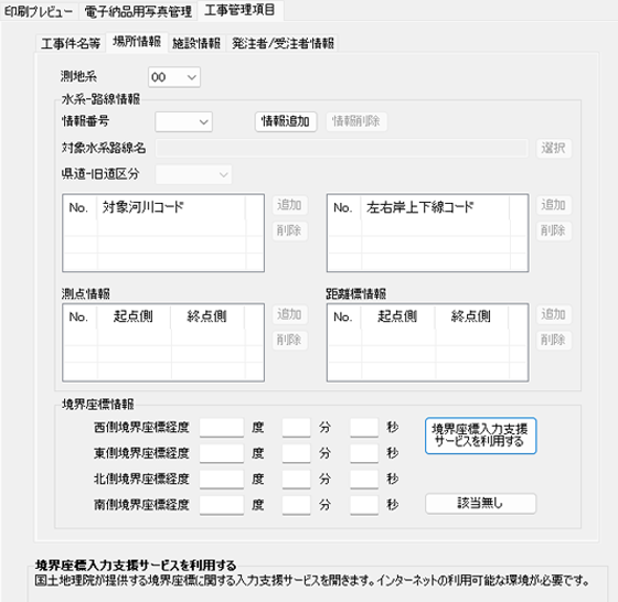 国土地理院が提供する境界座標に関する入力支援サービスを表示します。
